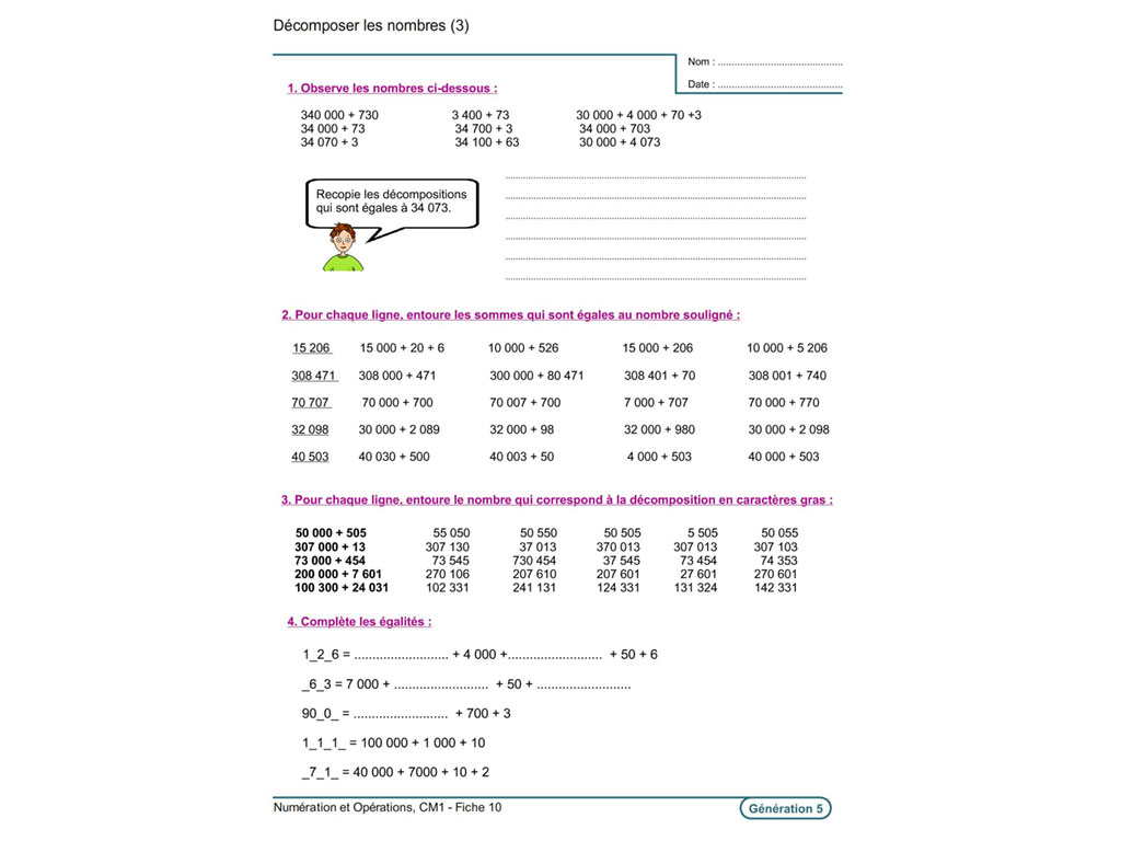 Un ensemble d'exercices de mathématiques pour travailler la numération et les opérations au CM1...