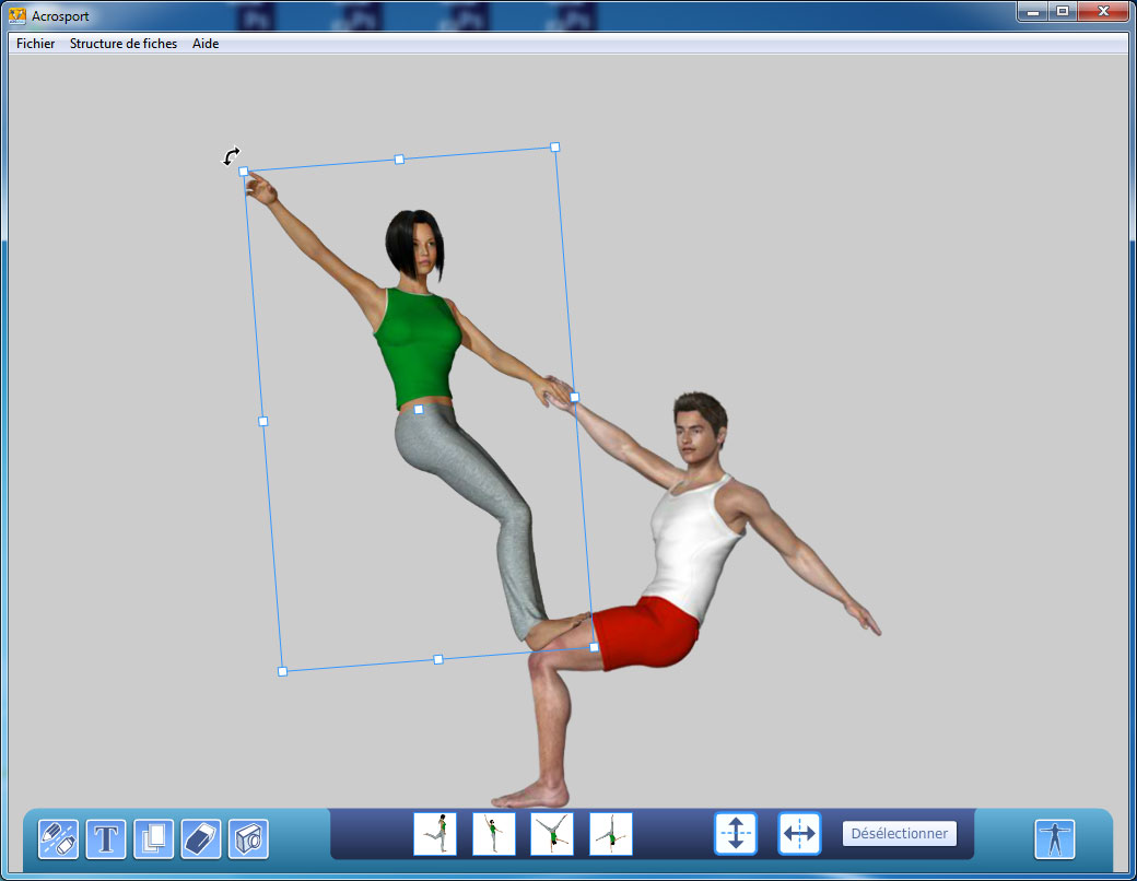 Le logiciel Acrosport permet de réaliser, avec des personnages en 3D, des pyramides d'acrosport nombreuses et variées.