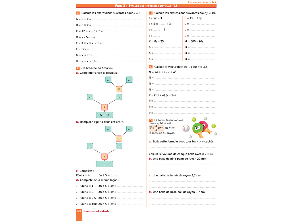 -> un grand choix d'exercices sur tous les points du programme de mathématiques 5e ;