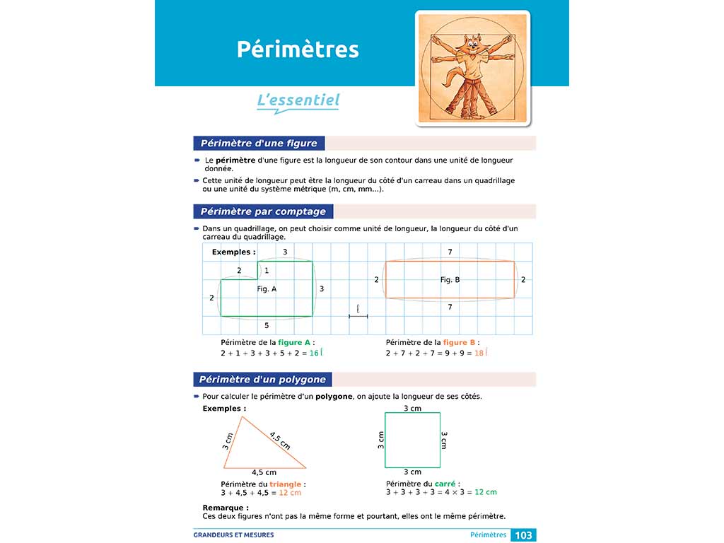 - grand choix d'exercices dans les différents domaines : Nombres et calcul, Grandeurs et mesures, Espace et géométrie