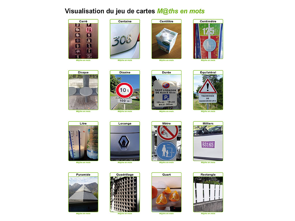 - Jeu de 32 cartes : le but est de faire deviner un mot de vocabulaire mathématique (avec une description, puis un seul mot).