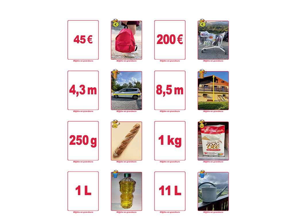 - Jeu de 32 cartes : le but est d'associer chaque objet à sa mesure (masse, longueur, prix, volume).