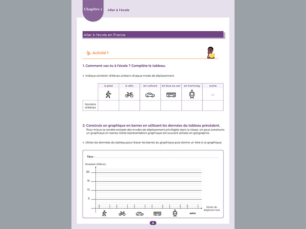 Le support papier est conçu pour rendre l'apprentissage de la géographie motivant et stimulant, au travers d'exercices ludiques et variés et par une mise en page organisée, illustrée et aérée : textes à trous, QCM, mots croisés, questions-réponses, coloriage, schémas, etc.