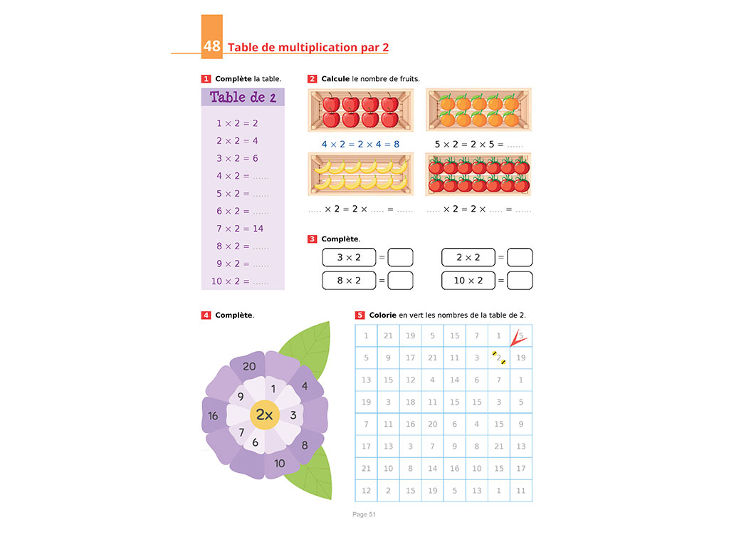 • des mises en situation variées adaptées au quotidien des élèves de CE1 : coloriages codés, points à relier, quadrillages, fleurs de nombres, etc.