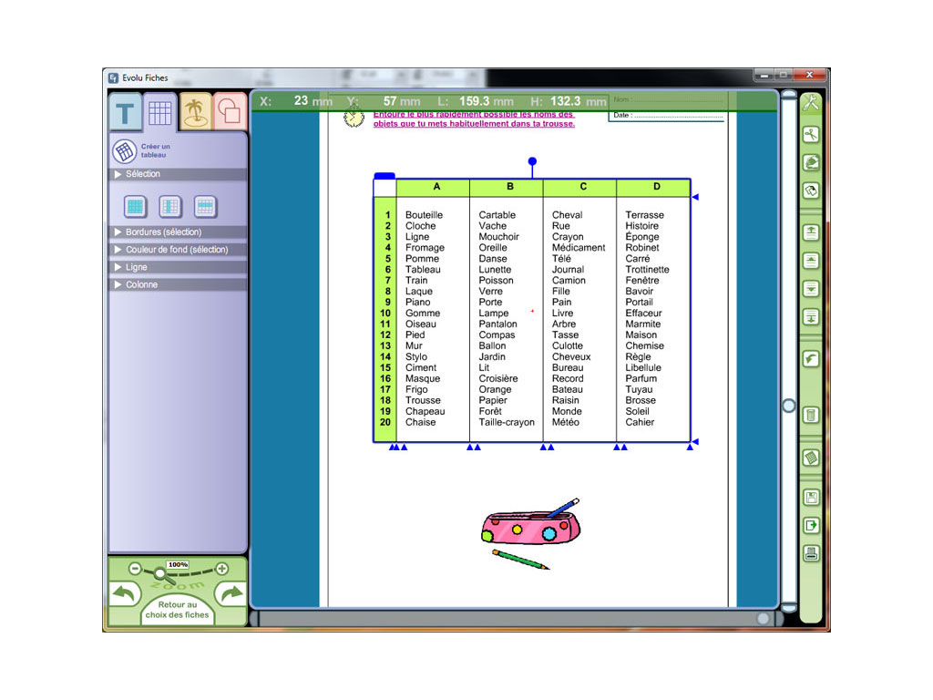 - logiciel en téléchargement permettant d'imprimer et de personnaliser les fiches en modifiant les textes et les images ;
